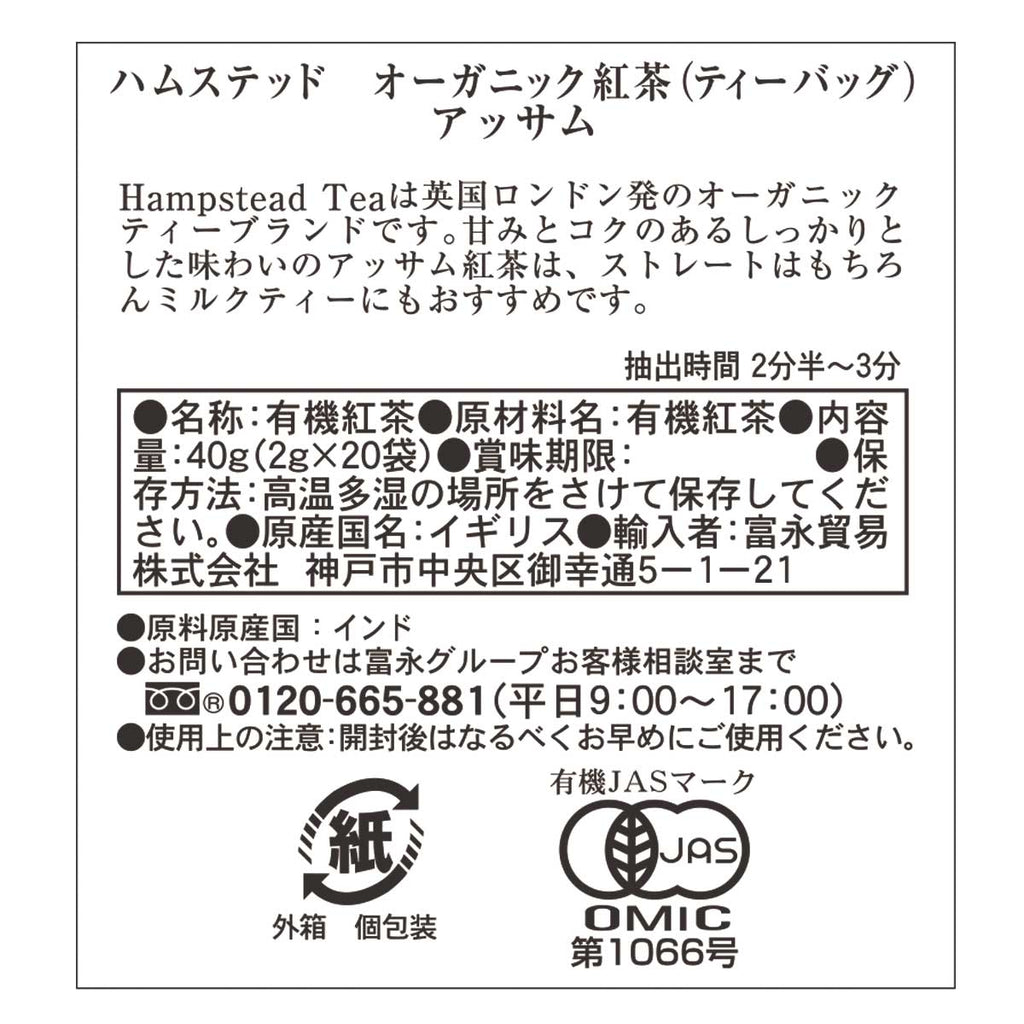 Hampstead Teaは英国ロンドン発のオーガニックティーブランドです。甘みとコクのあるしっかりとした味わいのアッサム紅茶は、ストレートはもちろんミルクティーもおすすめです。抽出時間 2分半?3分